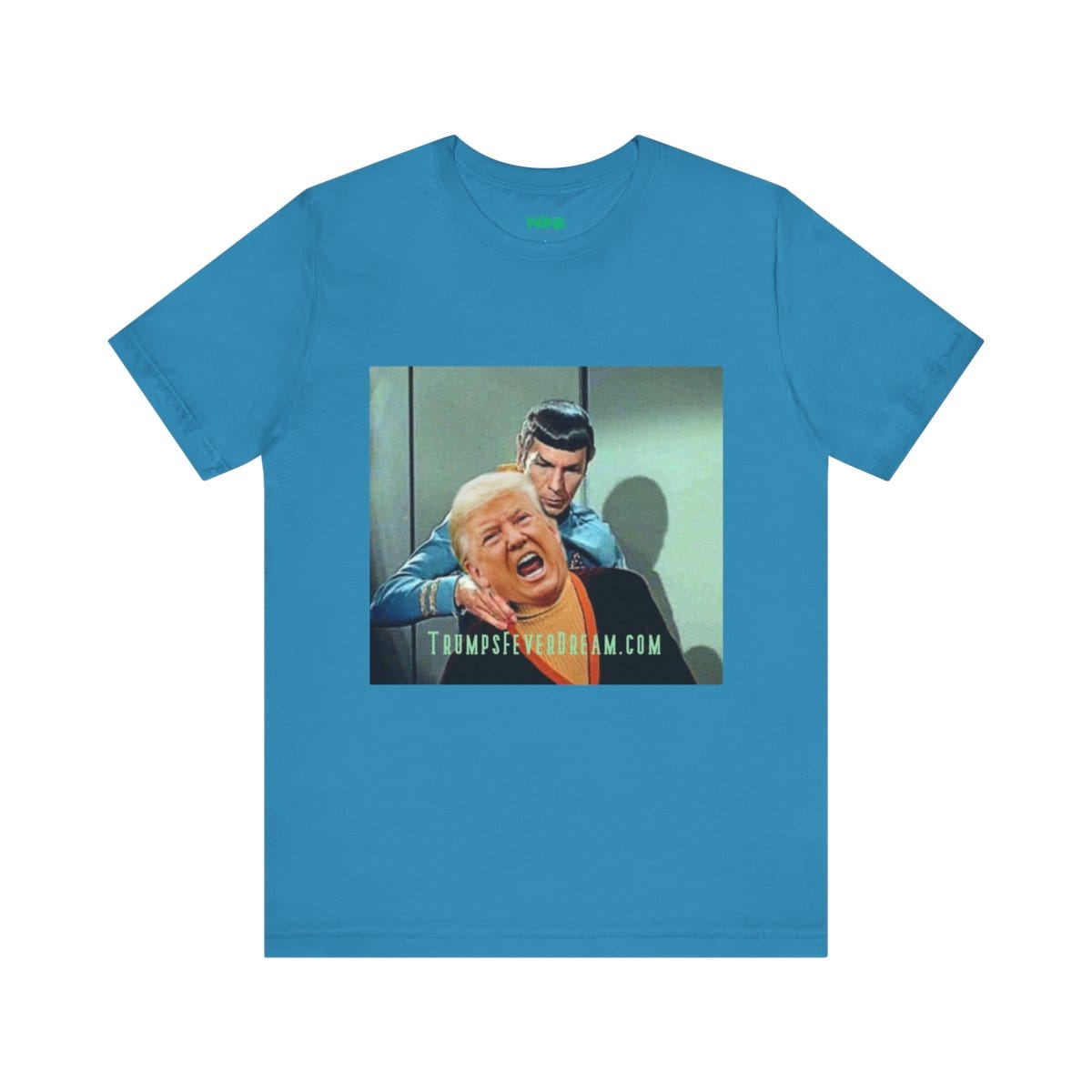 Good for laughs, this tee features Trump in a Vulcan Nerve Pinch. This classic unisex crew neck tee fits and wears beautifully and the graphic message keeps on giving. Soft, 100% Airlume combed, ring-spun, quality construction and cotton poly blend is easy to layer, breathable and wears perfectly for a better fit over time.